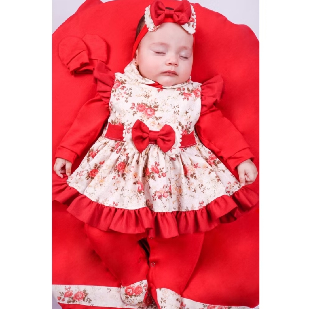 Este conjunto traz cores suaves e estampas florais encantadoras, trazendo harmonia e beleza para o primeiro look do bebê. A abertura frontal e as mangas longas facilitam o momento da troca, garantindo praticidade para os pais e conforto para o bebê